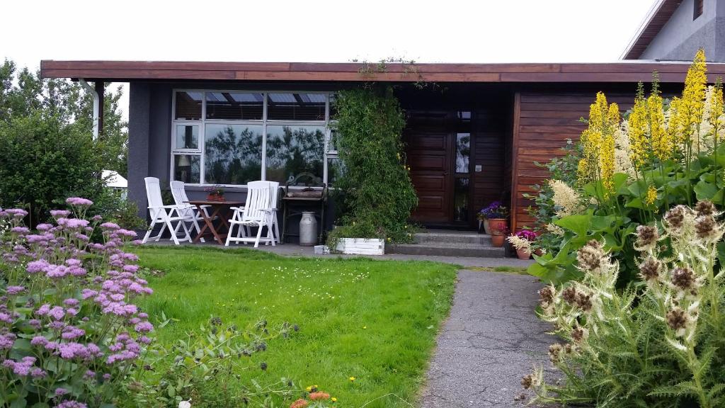 Unwind in the Tranquil Garden Oasis at Dilksnes Guesthouse