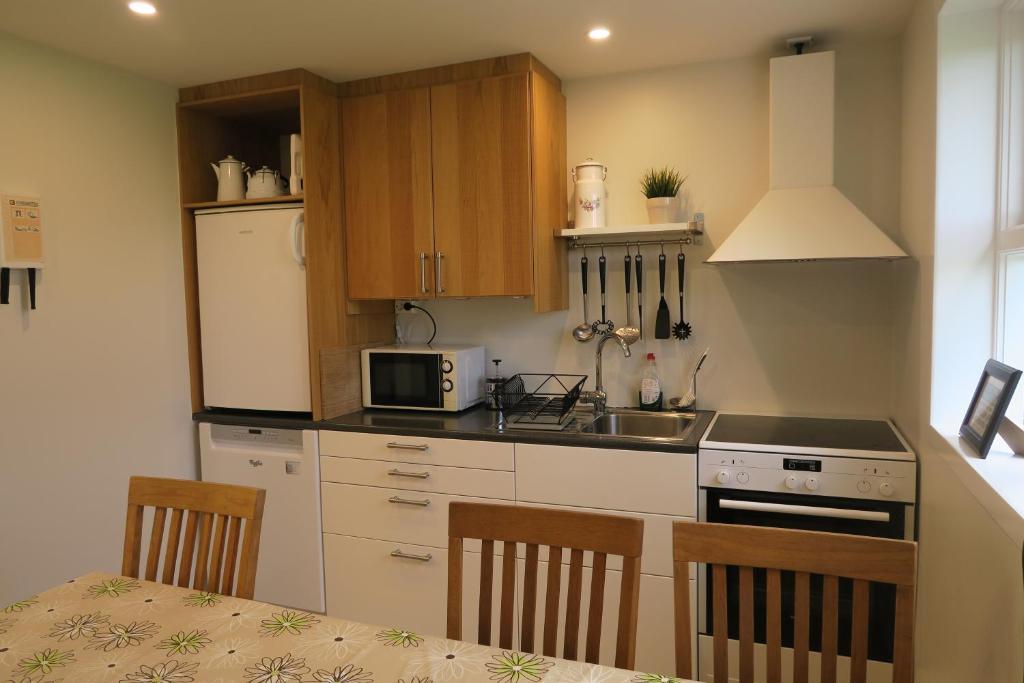 3 room cottage with a shared kitchen and very pretty views. Our room offered us both privacy and a good night's sleep. Lovely bed linens. Very clean room. Highly recommend.