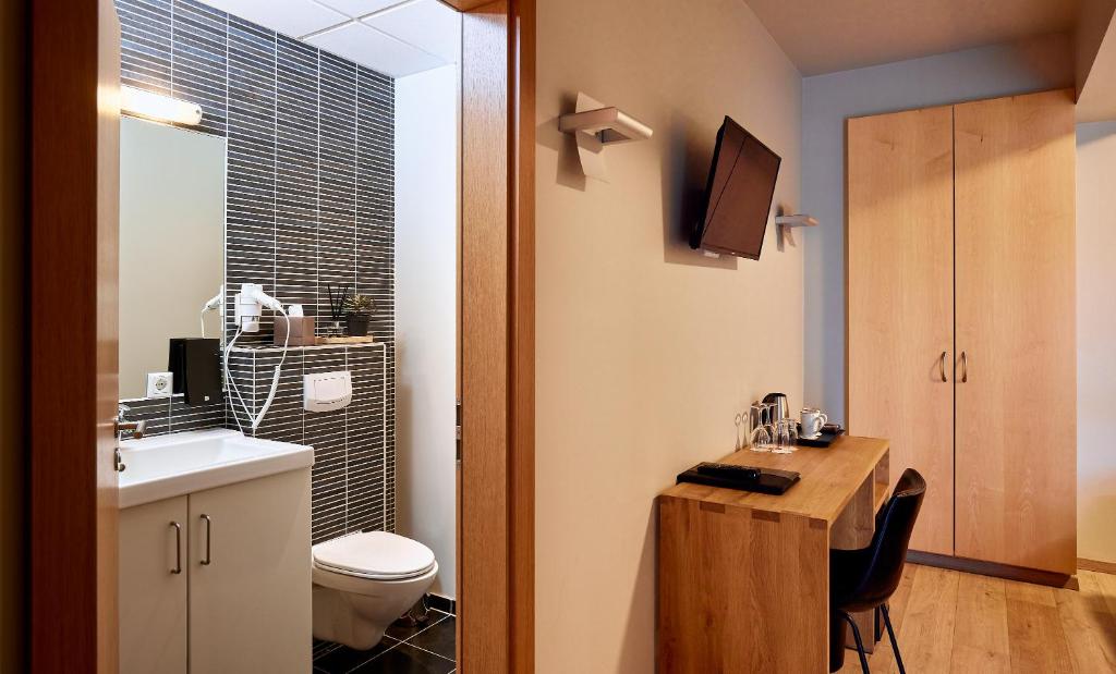 Great thing about the hotel is its location and a parking lot at site (with additional cost) and also the breakfast was great. Bathroom facility seriously needs maintenance. A few lights in the bed room and hallway wasn’t working, however the light in the bathroom really gave nightmare experience. There were 3 lights in the bathroom and 2 already dead, left with 1 which will start blinking after we left it on for a while. The staff couldn’t help much as it was already 6pm , no one left to fix it. Lucky that last light stayed till the end else we will be shower in the completely dark with no window in the bathroom. Apart from the light , the hot water wasn’t working properly either as if some issue with electricity system in the bathroom area. The hot shower was making strange noise the whole time and there were water dripping from the pipe near the heater area. At the washing basin, after we adjust for the right temp for warm water, at some point the cold water were just disappeared left only pure hot water out. It could have been a much more pleasant stay without a bathroom issue. Hope this could be fixed soon for other guests.