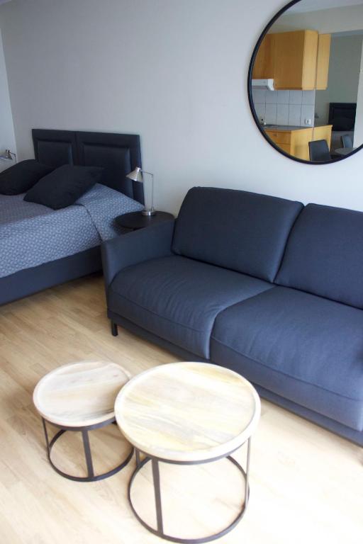 If you prefer a bit more space, the Studio Apartment is perfect for you. With 35 square meters of room to spread out, it features 2 Single Beds for a good night's sleep. For those seeking even more luxury and room to relax, the Studio Deluxe Apartment offers 55 square meters of space and the option of 2 Single Beds or 1 Sofa Bed.