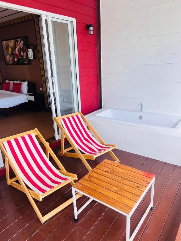Indulge in the luxurious and spacious rooms at Kasem Island Resort, located in the serene surroundings of Kanchanaburi, Thailand. Choose from the exquisite Jacuzzi Suite, offering 36 square meters of lavish space and featuring a comfortable King Bed. Or opt for the enchanting Riverfront King Room, also spanning 36 square meters and furnished with a plush King Bed. Each room is thoughtfully designed to provide a tranquil retreat, allowing you to unwind and rejuvenate amidst the natural beauty of the resort.
