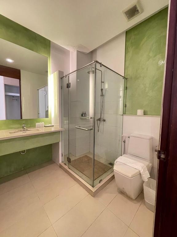 If you are looking for accommodation that meets both comfort and impressive service, this is the answer you shouldn't overlook. The room is very spacious with perfectly arranged furniture, making it feel airy and not cramped. The room is simply but nicely decorated, providing a relaxing atmosphere. It comes with comprehensive amenities, especially the air conditioning that is comfortably cool from the moment you walk in, and the highlight is the smart TV that can connect to the internet to watch Netflix or YouTube to your heart's content, perfect for those who want to relax comfortably in the room. The bathroom is equally impressive—spacious, clean, and fully equipped. The water pressure is good for both hot and cold water, and it's very convenient to use. As for breakfast, I must commend it for exceeding expectations. There are various options available, both Thai and international, with good taste and freshness, consistently replenished. Whether it's rice soup, side dishes, fried eggs, sausages, bread, fruits, or freshly brewed coffee, it’s truly worth the price of the room. Additionally, there is ample parking available, so you don't have to worry about finding a spot, even during holidays or festivals. But the aspect I want to commend the most is the "staff." Everyone here provides professional service with smiles, friendly attitudes, and is willing to help from check-in to check-out. You can really feel their dedication to taking care of the customers. Overall, this place offers a great experience in terms of location, comfort, and service. Anyone looking for affordable accommodation that exceeds quality expectations should definitely consider it! You won't be disappointed!
