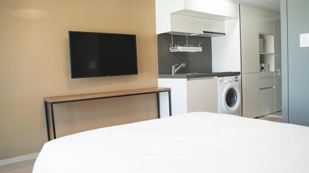 Advantages Emart, Daiso, and Burger King are within a 3-5 minute walk. Convenience store downstairs. Lake is right next to it. Most places can be reached within 15 minutes by car. Parking facilities are very comfortable, and being underground is great. There are tables, although not very spacious, where you can sit and have a light meal. Although it is said that soundproofing is poor, you can hear the TV and other sounds if you press your ear against the wall, but if you don’t try to listen closely, you won’t hear much from the next room (of course, the next room may have been quiet). It’s not a whirlpool, but the bathtub is fairly spacious. Good natural lighting. The staff are friendly and flexible. Disadvantages There is no dryer, so using the built-in drying rack makes it very hard to open the refrigerator and front door with clothes and towels hung out. The bathroom is a bit cramped. When trying to fill the bathtub with water from the tap that has seawater, it only comes out at a lukewarm temperature. There is an induction cooktop, but it’s unusable, and there are only two glass cups for tableware. The hair dryer nozzle comes off easily with a slight bump. Overall, despite the disadvantages compared to the advantages, none of them were significant problems, and I was very satisfied overall. It was very good for the price, and I don’t know what the price is during peak season, but I want to keep using this pension every time I visit Sokcho.