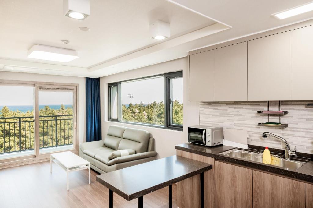 I used it for ***won during the holiday, but it seems a bit pricey to use it at ***won. Pros: 1. The location of the accommodation is very good. It's right in front of the beach, so it's very convenient. 2. There are convenience stores and restaurants right below the accommodation. The facilities are very good. Cons: 1. Parking is a nightmare... It's really full, and there's no place to park. There are people using the commercial parking area, so I wonder if the guests who pay a high price for accommodation could be prioritized for parking. 2. I paid a lot of money, but I have to buy the garbage bags for regular trash and food waste at the convenience store and dispose of them separately. It seems like nowadays you have to pay for cleaning the room as well… I don't think this is reasonable for 300,000 won. ^^;; It would be great if the price were for weekdays.